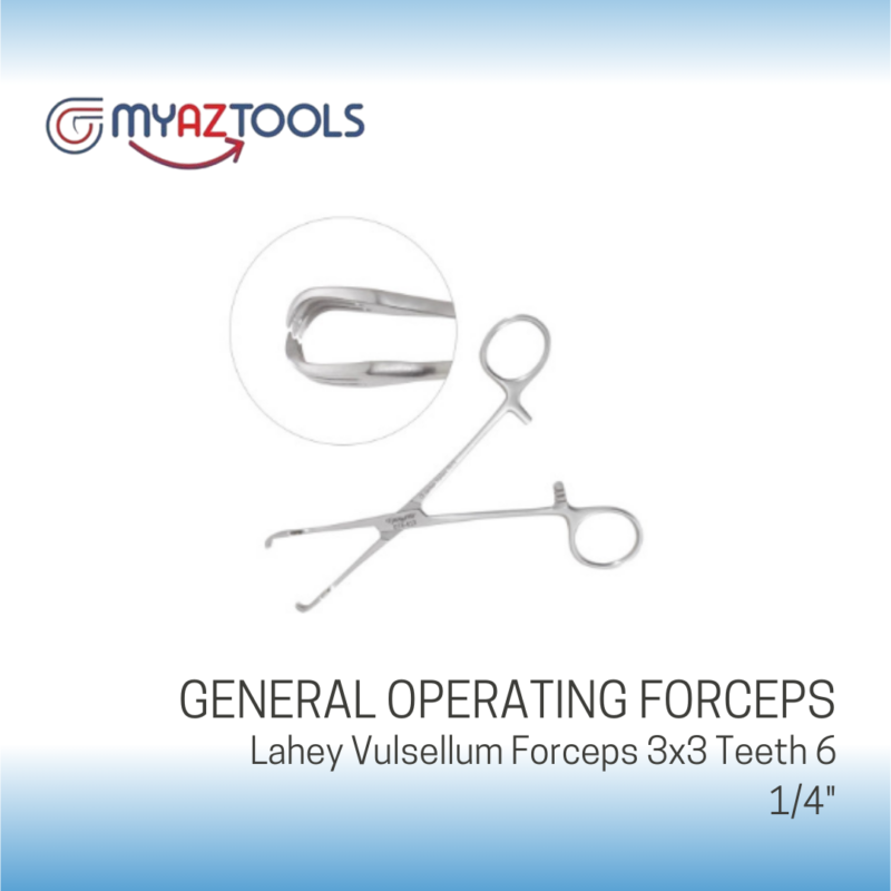 Lahey Vulsellum Forceps 3x3 teeth, 6 1/4" in length: The instrument is specifically engineered to grasp and hold up tissues like the cervix or uterus in gynecologic surgeries. Toothed configuration of the jaw prevents tissues from slipping while operating. These handles are designed ergonomically, with ratchets that provide a locking action for surgeons, thereby minimizing their hands to work. For its construction in corrosion-resistant German stainless steel, the instrument is reusable, easy on sterilization, and relatively durable for both gynecologic and general surgical work.
