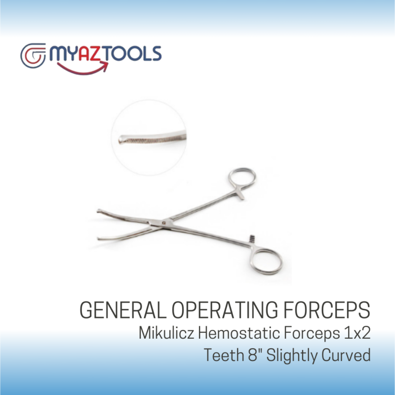 The Mikulicz Hemostatic Forceps, 8" long and slightly curved with 1x2 teeth, are ideal for clamped blood vessels and delicate tissues during the surgery. The forceps designed especially for gynecology and neonatal surgeries exhibit high tensile strength with ratcheted locking. German stainless steel manufactured forceps are reusable and rust-proof. They can also be easily sterilized. Hence, these are the best picks for routine and special surgeries.