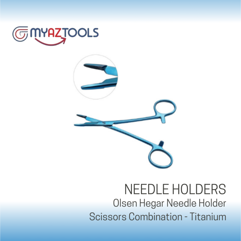 The Olsen Hegar Needle Holder Scissors Combination - Titanium is a dual-action surgical instrument. It helps surgeons cut and resize the suture threads as well as drive the suture needles while stitching the incisions. Titanium improves the durability of our Olsen Hegar Needle Holder Scissors Combination and makes it more durable and long-lasting. Moreover, it is ratcheted, reducing handling fatigue. Additionally, the tool is: •   Ā Easily operable •   Ā Dual-purpose •   Ā Rust-resistant •   Ā Reusable