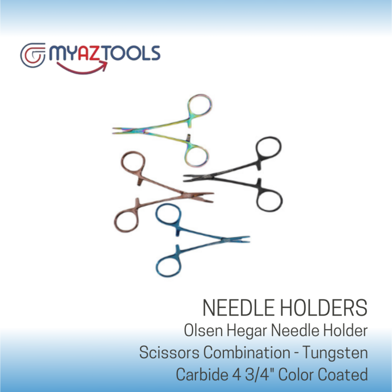 Olsen Hegar Needle Holder Scissors Combination – Tungsten Carbide 4 3/4″ Color Coated