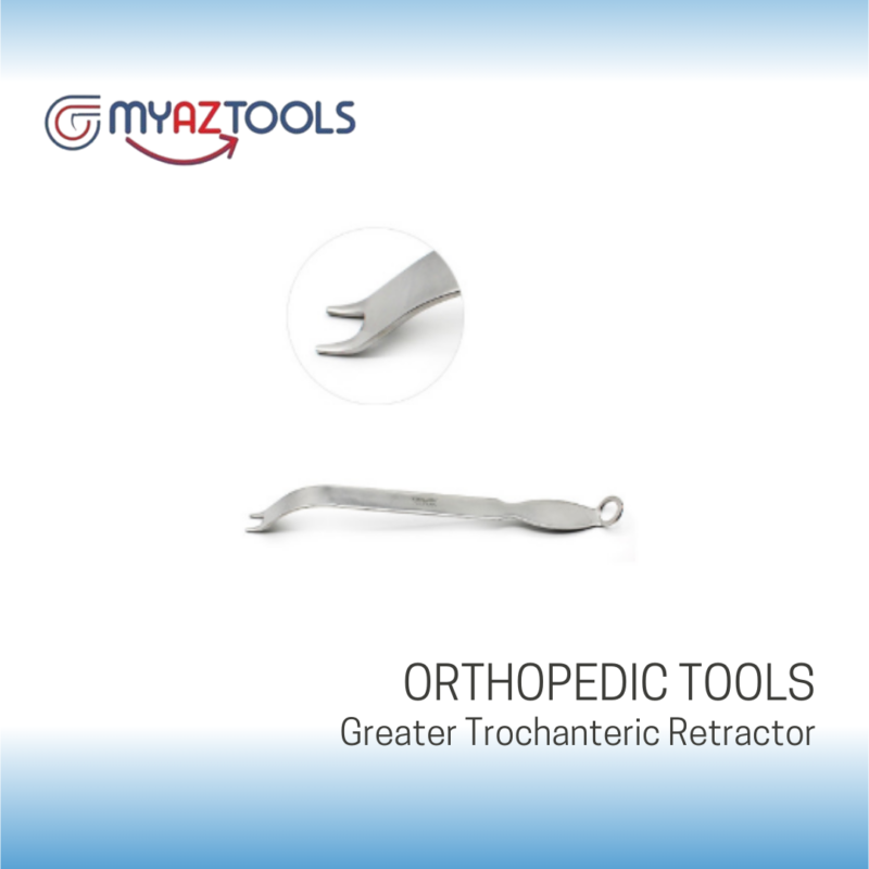 Greater Trochanteric Retractor is widely used during anterior approach total hip arthroplasty. It is manufactured in a unique design to make it more suitable for multiple surgical procedures. It is made from high-quality German surgical stainless material. So, it is reusable after sterilization. The retractor No. 7 comes with a Blade Width of 25 mm, Blade Depth 1.5" (3.8 cm), Overall Length is 14.875" (37.8 cm).