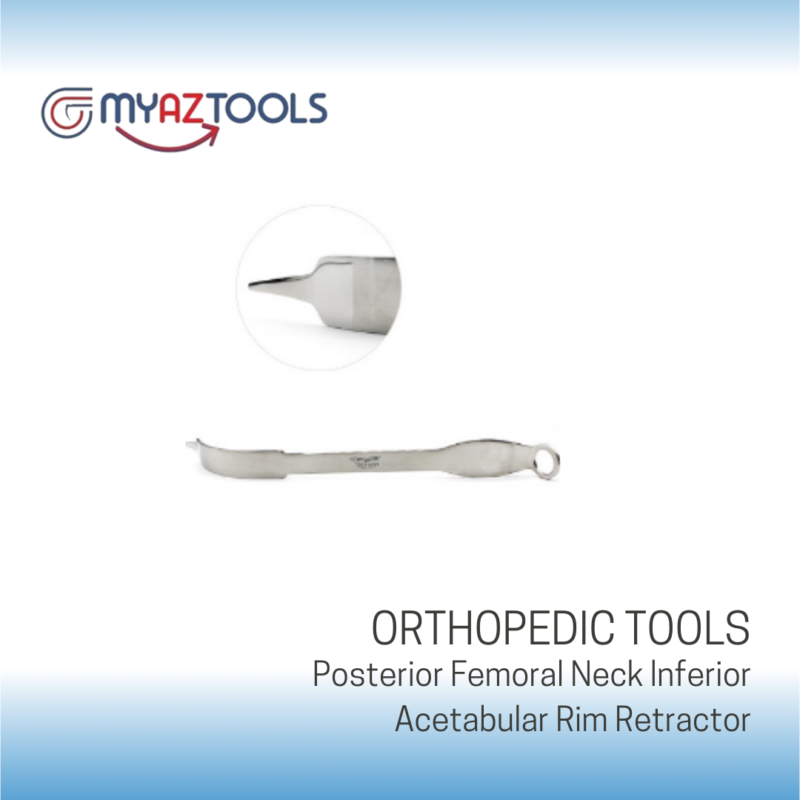 The Posterior Femoral Neck Inferior Acetabular Rim Retractor is a German stainless steel instrument ideally designed for hip surgeries. This instrument provides effective retraction of the femoral neck and inferior acetabular rim. Its angled curvature helps access hip joints and remove femoral heads with minimal chances of complications.