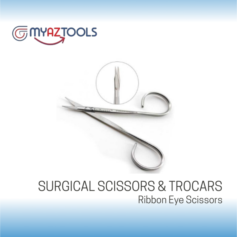 Ribbon Eye Scissors have a super sharp structure, and it is available in several variations. It boasts a blunt end for accurate cutting of the softer tissues. Ribbon Eye Scissors are made with German stainless, and they are used in ophthalmic procedures. These scissors have blunt ends to ensure precise cutting. Moreover, it is available in several variations. It is 4" in length, and you can get it in customizable size as well. Features: •    Available In Many Variations •   Ā Super Sharp Structure •   Ā Blunt End •   Ā Steam Sterilizable