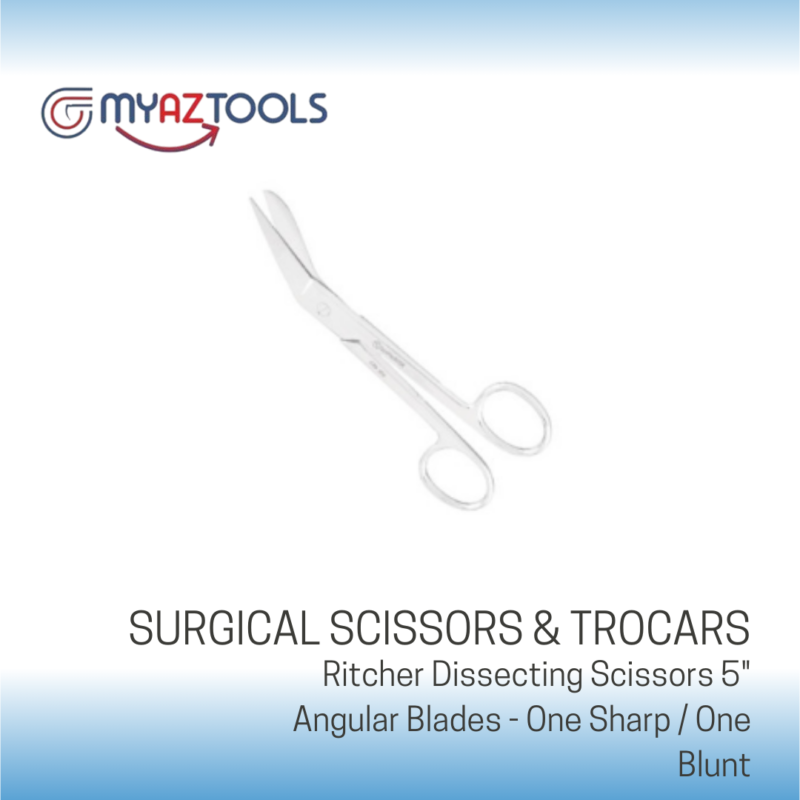 Ritcher Dissecting Scissors 5ā€ Angular blades are used for tissue dissection during multiple surgeries. These scissors are also helpful for cutting bandages, gauze, dead tissues, sutures, and skin. Ritcher Dissecting Scissors are manufactured with sharp and blunt tips for fine dissection. These scissors have the following features: