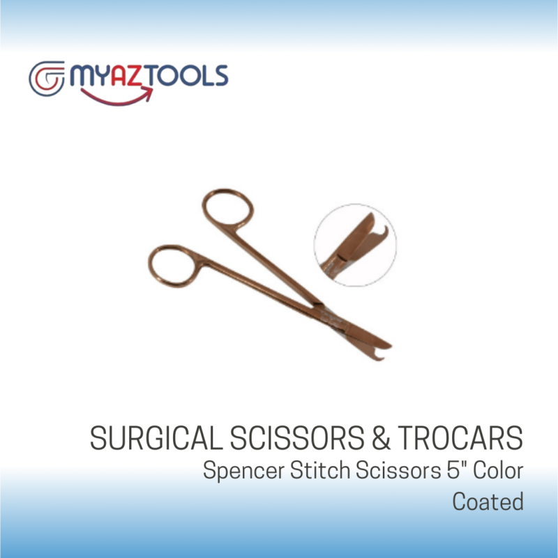 The Spencer Stitch Scissors 5" Color Coated are specifically designed for removing sutures with minimal damage to surrounding tissues. Available in multiple colors for easy identification, these scissors ensure control and comfort during suture removal. They are crafted from surgical-grade stainless steel.