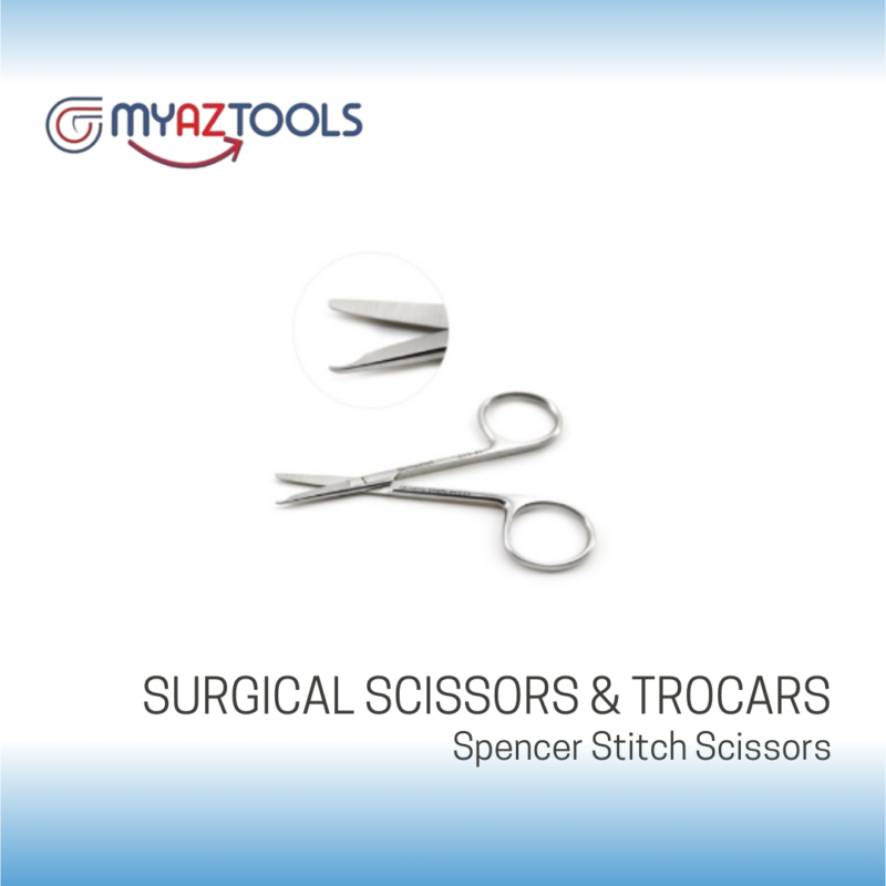 Spencer Stitch Scissors are precision surgical tools designed to cut sutures with ease and accuracy. Available in two sizes, 3 1/2" and 5", these scissors feature a sharp, curved blade ideal for performing precise stitches.