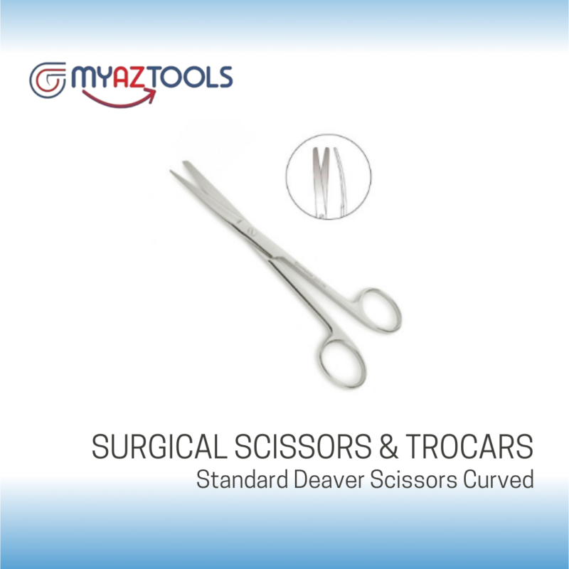 Standard Deaver Scissors curved are made for blunt and sharp dissection in surgical procedures. It is reusable.