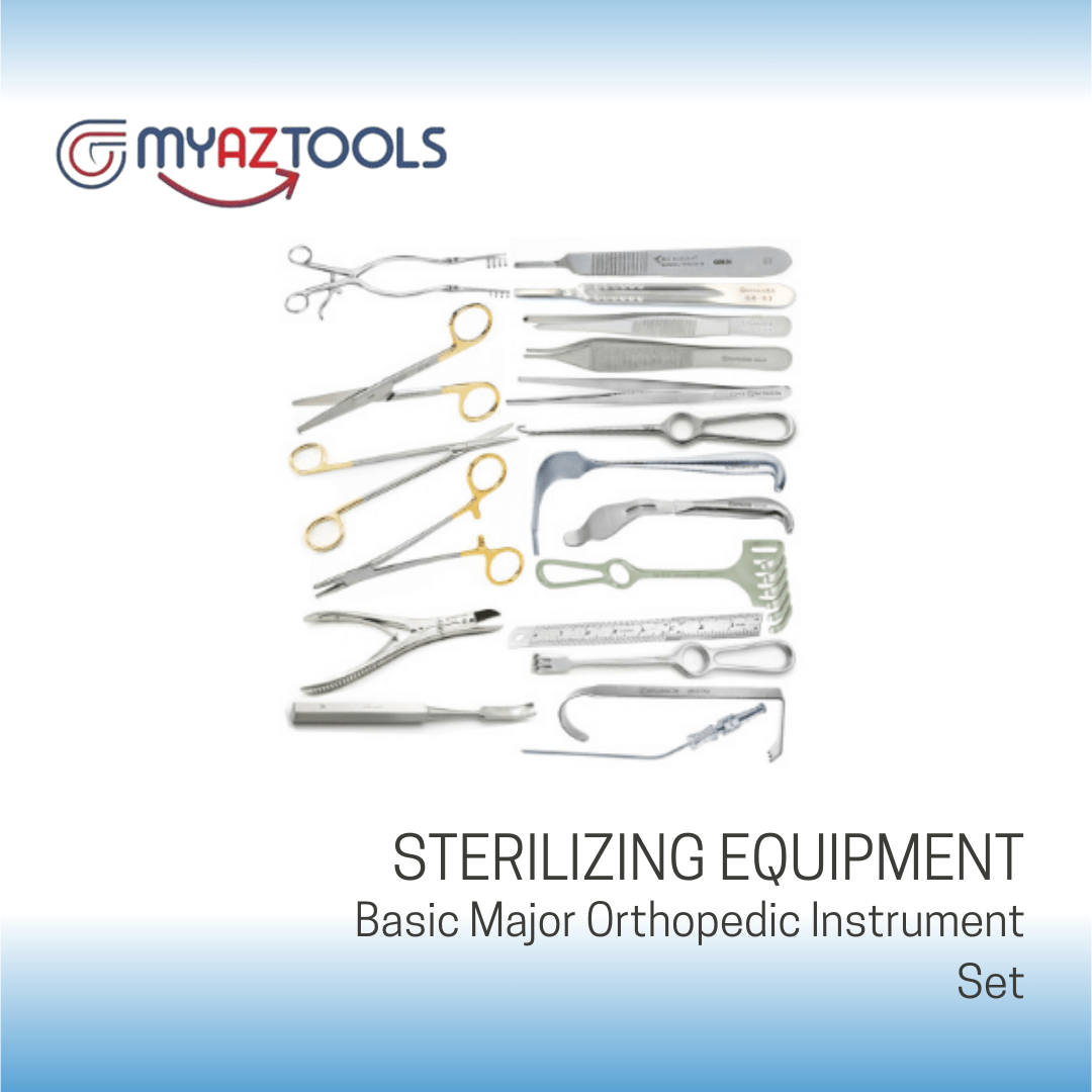 Basic major orthopedic instruments are designed to treat joint abnormalities and manipulation of bones, ligaments, tissues, and tendons. The ortho tool kit includes retractors, forceps, needle holders, osteotomes, suction tubes, towel clamps, and other essential instruments. All instruments are forged with German stainless steel.
