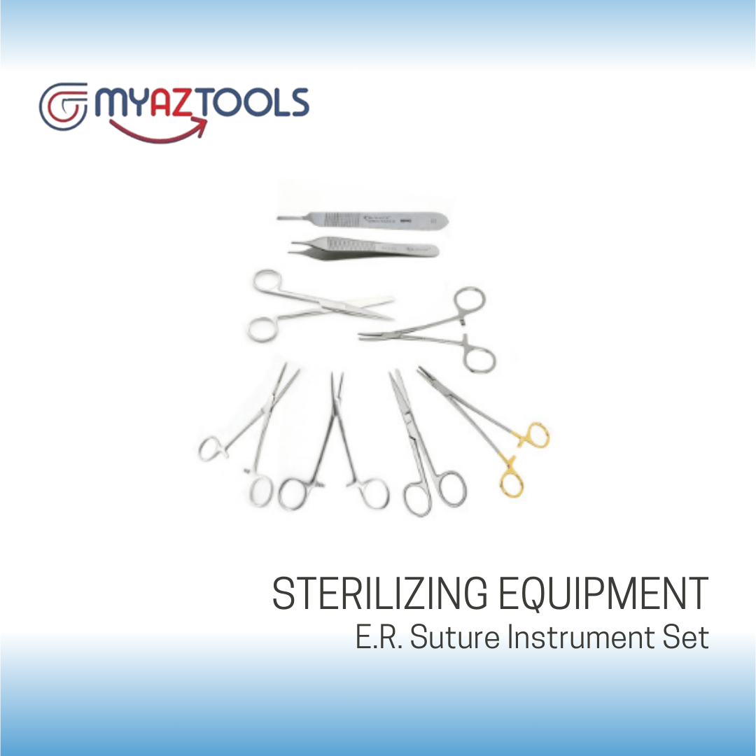The E.R. Suture Instrument Set is a set of 13 different tools. It includes scissors, towel clamps, needle holders, and a knife handle. All these tools help with optimal suturing during various surgical procedures.Ā offers this set with instruments made of premium quality materials.