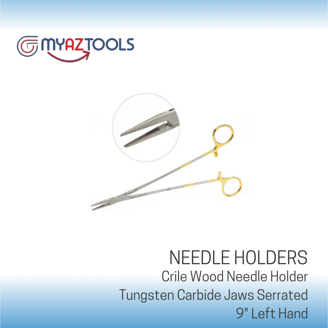 Crile Wood Needle Holder Tungsten Carbide Jaws Serrated 9″ Left Hand