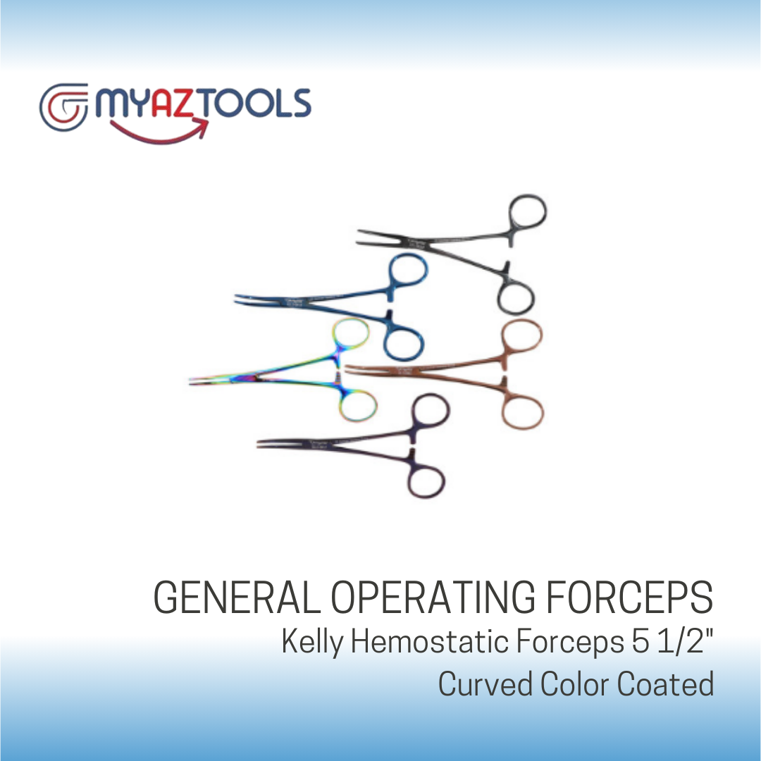 Kelly Hemostatic Forceps 5 1/2″ Curved Color Coated are versatile surgical instruments designed for blood vessel clamping and firm grasping of heavy tissues for easier surgical procedures. Their color coating enhances visibility, while the curved design provides precision in various medical settings.