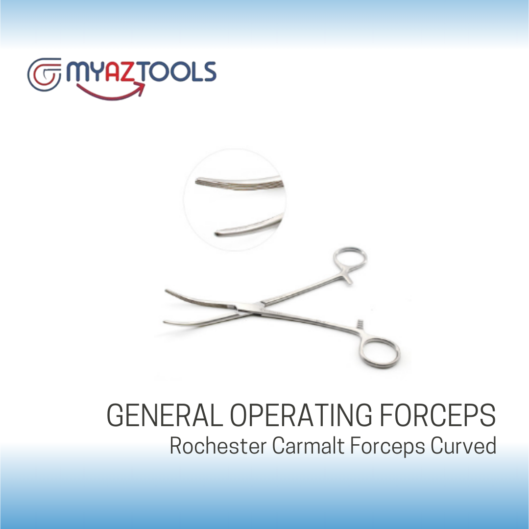 Rochester Carmalt Forceps Curved are specially designed hemostatic tools to clamp and regulate blood flow by securely gripping blood vessels or large tissues. They have longitudinal serrations along the jaws’ length and cross-serrations at the end, providing a firm grasp without causing tissue damage. The forceps are corrosion-resistant German stainless steel that can be reused and sterilized and come in curved and straight patterns depending on the surgical requirement.